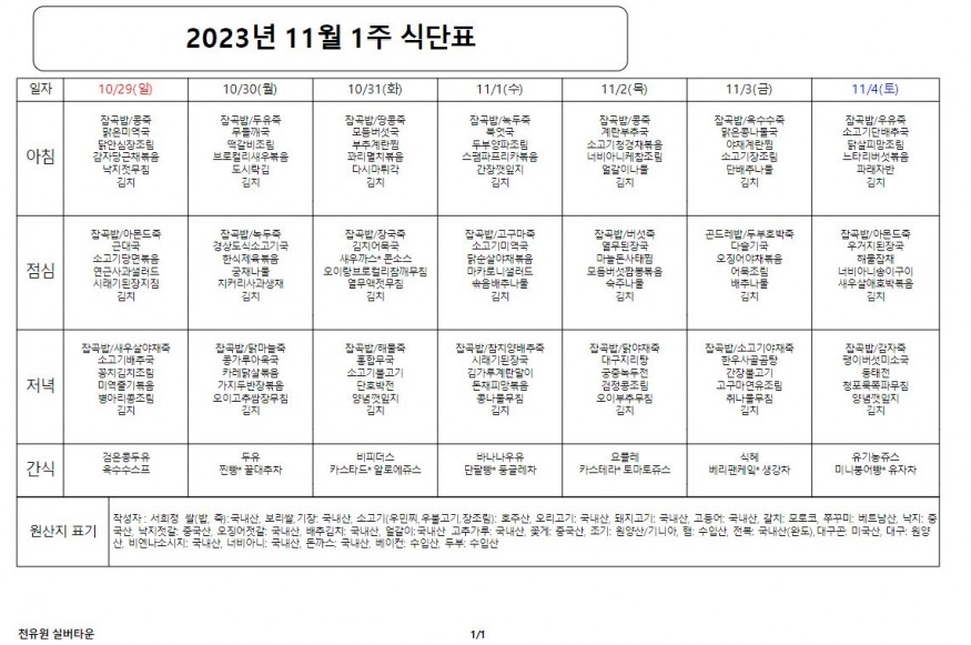 11월 1째주 식단표 페이지 정보 작성자 천유원실버타운 작성일23-10-27 13:18 조회6,291회 댓글0건 관련링크 이전글 다음글 목록 본문 11월 1째주 식단표 댓글목록 등록된 댓글이 없습니다. 이전글 다음글 목록