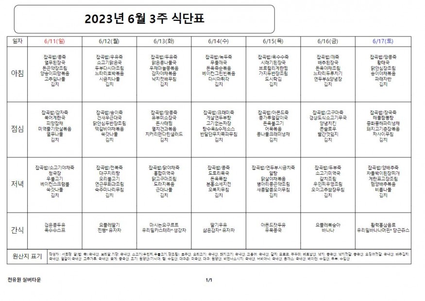 6월 3째주 식단표 페이지 정보 작성자 천유원실버타운 작성일23-06-12 16:51 조회5,873회 댓글0건 관련링크 이전글 다음글 목록 본문 6월 3째주 식단표 댓글목록 등록된 댓글이 없습니다. 이전글 다음글 목록