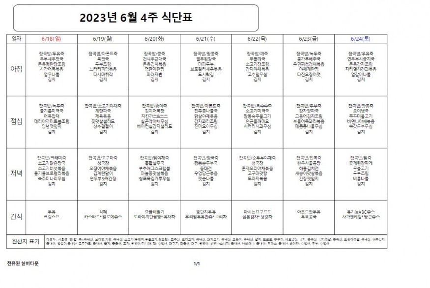 6월 4째주 식단표 페이지 정보 작성자 천유원실버타운 작성일23-06-19 10:50 조회5,875회 댓글0건 관련링크 이전글 다음글 목록 본문 6월 4째주 식단표 댓글목록 등록된 댓글이 없습니다. 이전글 다음글 목록