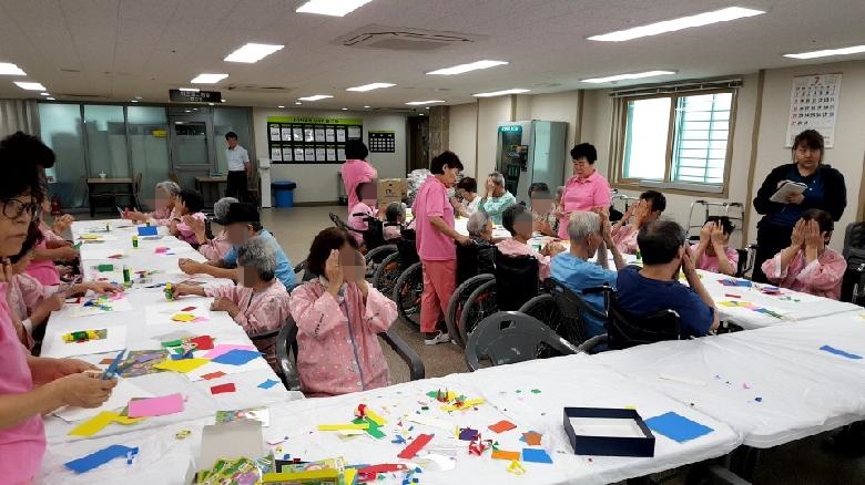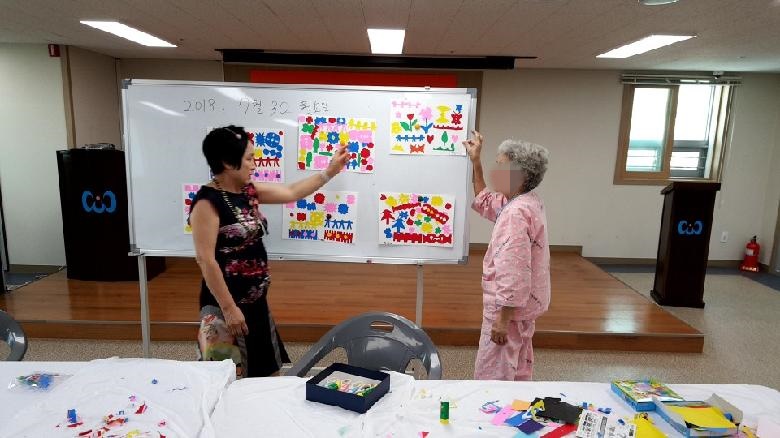 미술치료 페이지 정보 작성자 천유원실버타운 작성일18-10-01 18:44 조회2,547회 댓글0건 관련링크 이전글 다음글 목록 본문 일시 : 2018.07. 30(월)장소 : 10층 대프로그램실 "종이 찢어 붙이기"색종이를 반의 반을 접어 찢고 또 찢은후 A4용지에 붙이면 알록달록하고 개성있는 모양들이 완성이 됩니다.어떤 어르신들은 조그만해서 힘들다 하시는 반면에 꼼꼼하게 하셔서 자신만의 모양을 만든 어르신들도 계셨습니다. 이전글 다음글 목록