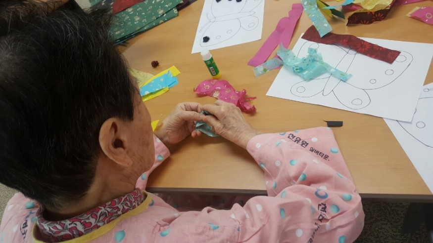 미술치료 페이지 정보 작성자 천유원실버타운 작성일18-04-30 13:39 조회2,482회 댓글0건 관련링크 이전글 다음글 목록 본문 일시 : 17.10.02장소 : 10층 대프로그램실 알록달록한 색종이를 작게 돌돌돌 말아 도화지에 붙이고 나니 아래와 같이 알록달록한 어여쁜 나비가 완성이되었습니다. 이전글 다음글 목록