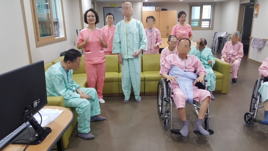 주1회로 진행이 되며 각층별 생활실 거실에 있는 TV로 USB를 꽂아 체조를 합니다.