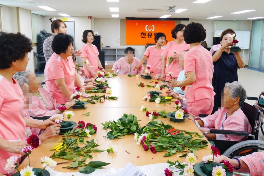 원예치료 페이지 정보 작성자 천유원실버타운 작성일17-09-21 16:15 조회2,325회 댓글0건 관련링크 이전글 다음글 목록 본문 강사:김일지 선생님장소:10층 대프로그램실 오늘은 첫 원예치료 날입니다. 어르신들께서는 꽃을 보고 "향기가 좋다", "색이 곱다"고 하시며 많은 호응을 보이셨습니다.알록달록한 다알리아 꽃을 수반에 꼽는 시간을 통해 어르신들께서 마음의 안정을 얻을 수 있었습니다. 이전글 다음글 목록